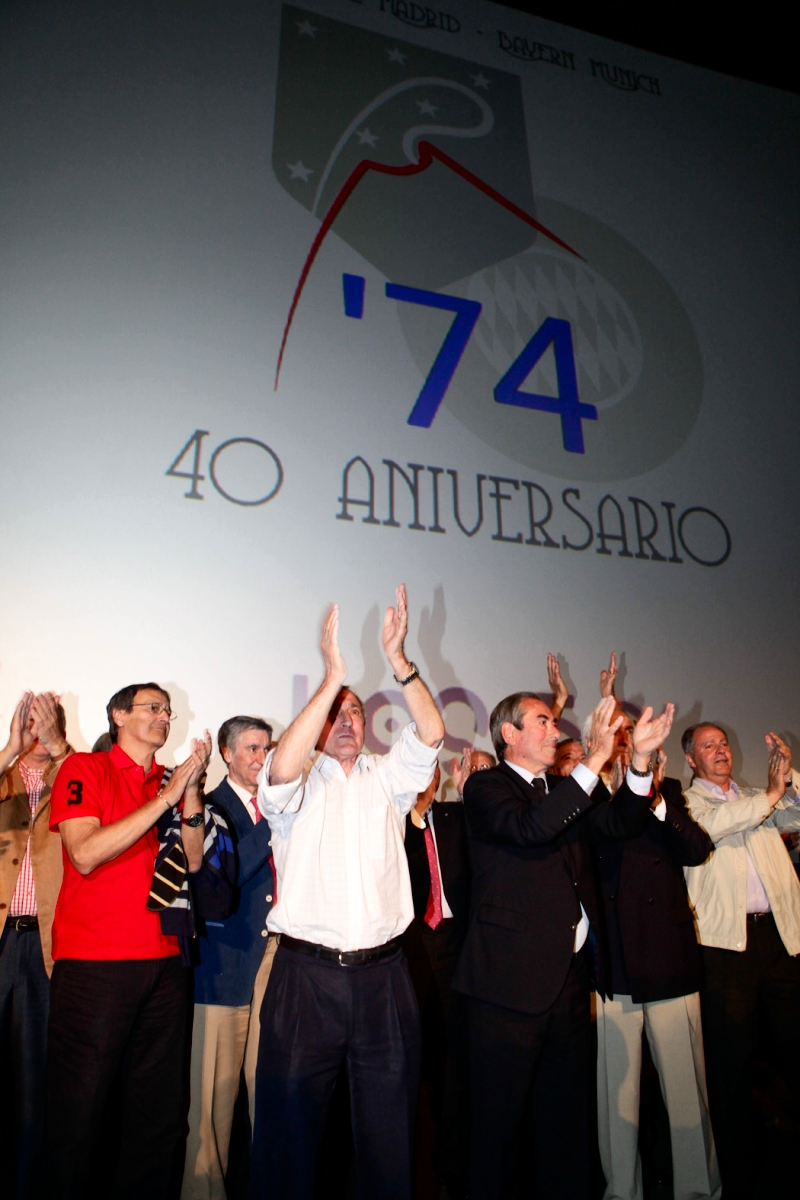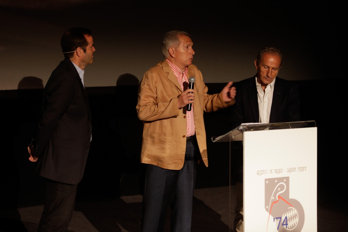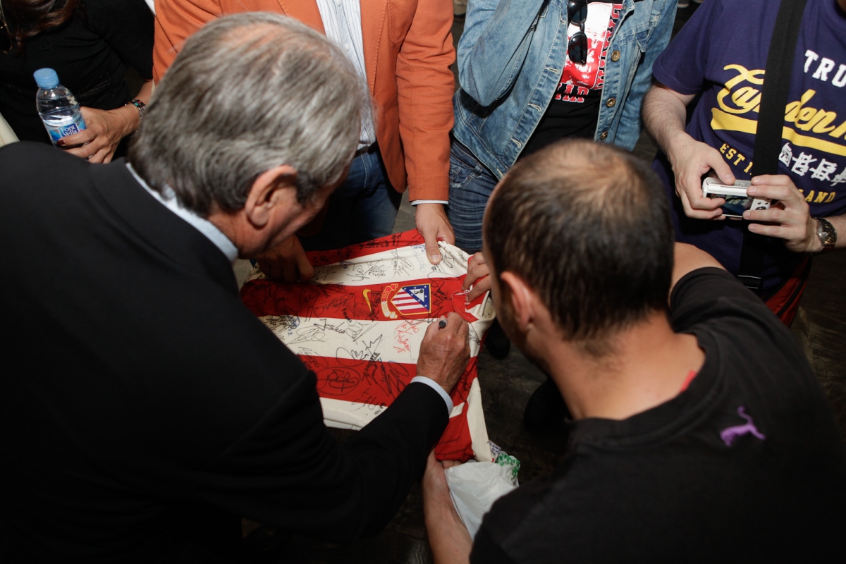 Paco Grande y nuestro Petón tomaron el escenario y fueron presentando a cada uno de los futbolistas, rapsodia coral de un partido y de un equipo y de una época. Panadero habló de su digamos contundencia, Ovejero reveló sus dudas entre el balón y los guantes, Eusebio evocaba su marcaje a Müller, Melo revivía la fe del vestuario, Adelardo confesaba su mirada de capitán a la Copa de sus anhelos. Ayala masticó su acento mexicano, Rodri presagió victorias inminentes, Leal desnudaba su escafoides, Reina se iba al Manzanares por bulerías y rugía a millares por peteneras.