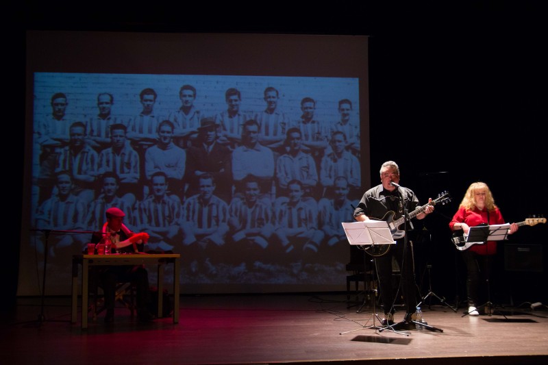 Vicente Vallés iba dando paso a las imágenes, Pablo Casinello narraba cada acontecimiento ataviado como locutor radiofónico de todas las épocas, el grupo musical Los Misterios ponía en directo la banda sonora y, de la constitución y primeras dos Ligas del Atlético Aviación, pasamos a la separación del Ejército del Aire, cuando el Club adoptó ya para siempre la denominación de Club Atlético de Madrid, en enero de 1947 y nuestro escudo perdió sus alas … Física, que nunca espiritualmente.