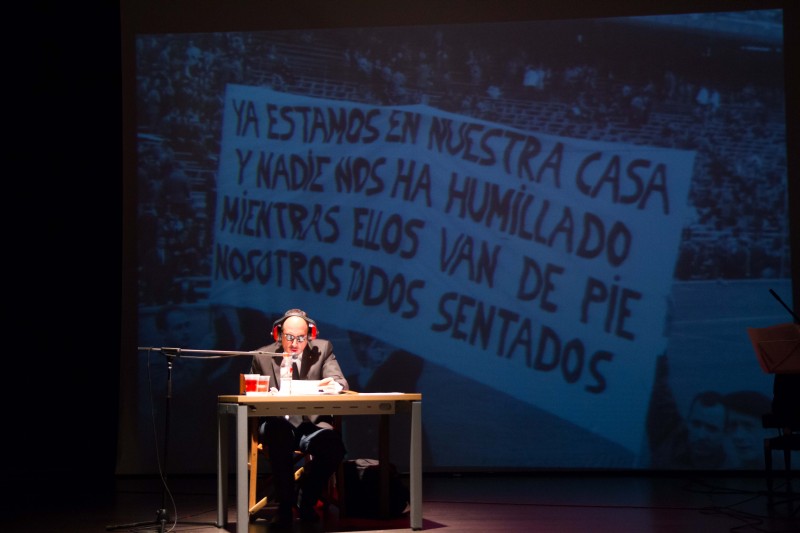 En presencia de un muy nutrido público de atléticos entusiastas e irredentos, y bajo la presidencia de altos mandos del Ejército del Aire, cuya colaboración ha sido decisiva y emotiva, de los queridos y no menos indispensables amigos de Mahou, así como del Presidente del Club, presentó el acto uno de los nuestros, el excelente y más que consagrado Vicente Vallés, le acompañó Pablo Cassinello, quien interpretó magistralmente un guión elaborado por nuestros compañeros José Manuel Tenorio y Luis Fuentes y, en el papel de locutor radiofónico, nos fue llevando a los asistentes por todos los sucesos relevantes ocurridos desde que, el 4 de octubre de 1.939, se creó el Athletic Aviación Club, bajo la presidencia del comandante Francisco Vivés, muy pronto convertido en Club Atlético Aviación, tras prohibirse los vocablos extranjeros en los nombres de los clubes de fútbol.