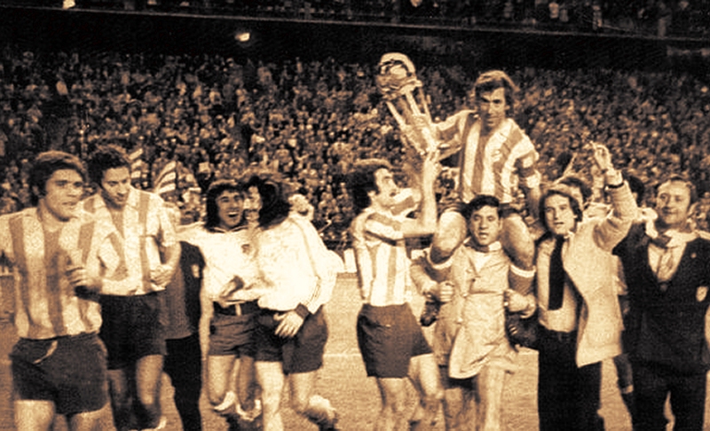 Juntos fuimos celebrando las Ligas de 1950 y 1951 con Helenio Herrera, legendario HH, aquellas dos Copas que le ganamos consecutivamente al Real Madrid de Di Stéfano, en 1960 y 1961; el primer título europeo, que fue la Recopa de 1962, la despedida del legendario Estadio Metropolitano por todo lo alto, con las conquistas de la Copa de 1965 y la Liga de 1966, la mudanza al Estadio del Manzanares, posteriormente rebautizado en 1972, con el nombre de su gran impulsor, el Presidente Vicente Calderón, justo a tiempo de celebrar la Copa del 72 y la Liga de 1973, cuando aún estaba reciente la Liga ganada en 1970, bajo la dirección de Marcel Domingo, de quien dicen los especialistas y sobre todo dijo siempre Luis Aragonés, y si lo ha dicho él poco más hay que comentar, que creó el estilo de juego (carácter, defensa, velocidad, juego directo y contragolpe) que ha sido santo y seña del Club desde entonces.