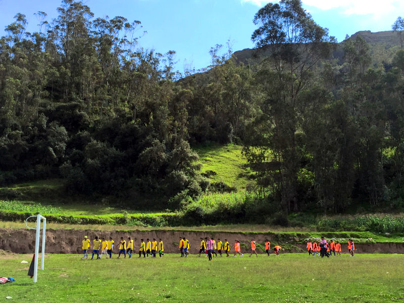 Continúa Santi, cuando uno llega a Mocomoco después de seis horas de carretera desde La Paz dando botes y tumbos entre curvas y baches; cuando uno escucha al misionero contar sus proyectos y programas relacionados con la educación, la nutrición y la salud entre la comunidad aymara, lo que menos se imagina es que pueda haber aquí una escuela de fútbol. Por eso, cuando nos dijo que una tarde teníamos que grabar a los chavales entrenando casi no le dimos importancia. Vamos que si nos lo saltábamos, no iba a alterar en nada los contenidos de los reportajes para nuestro programa.