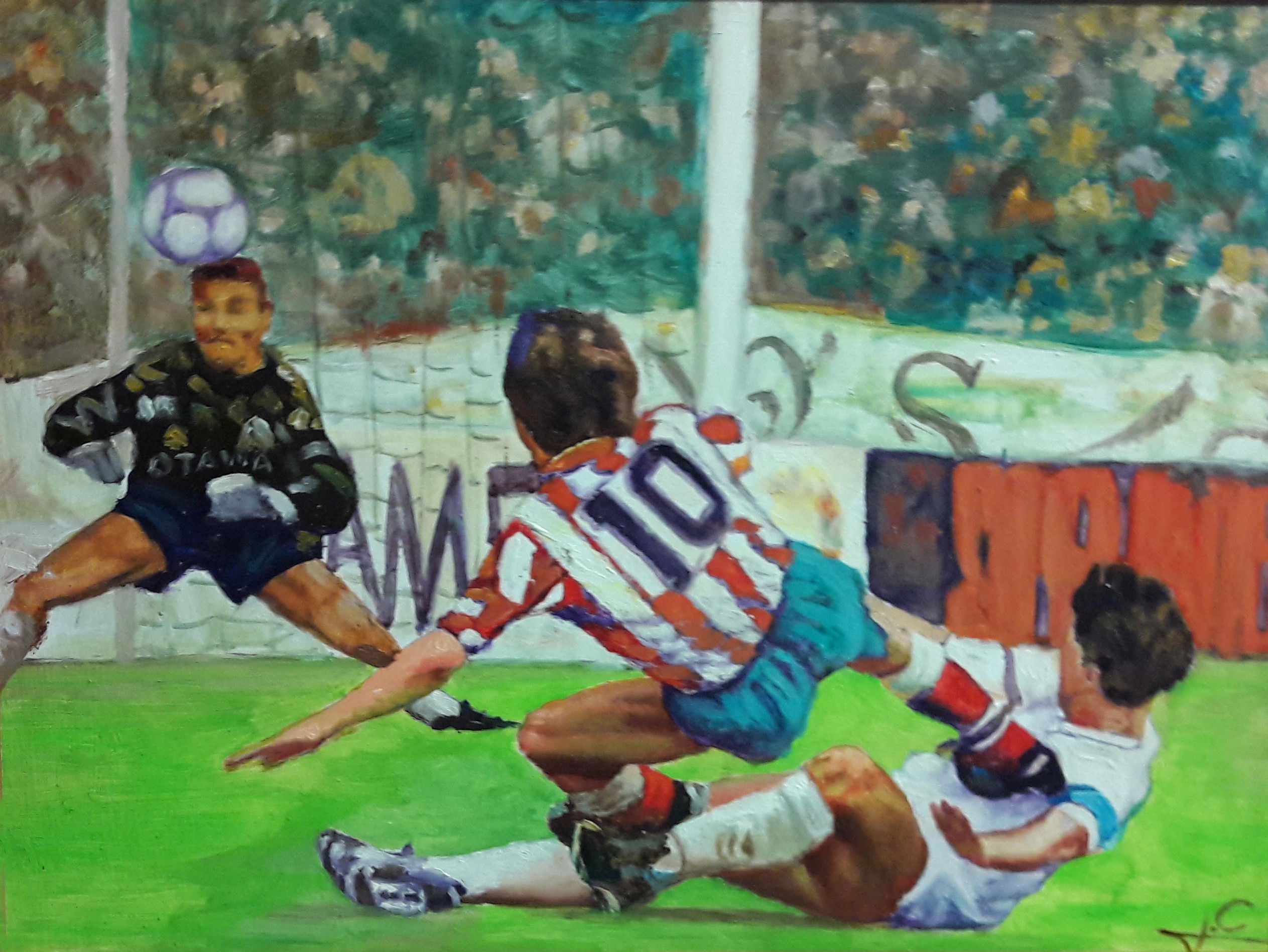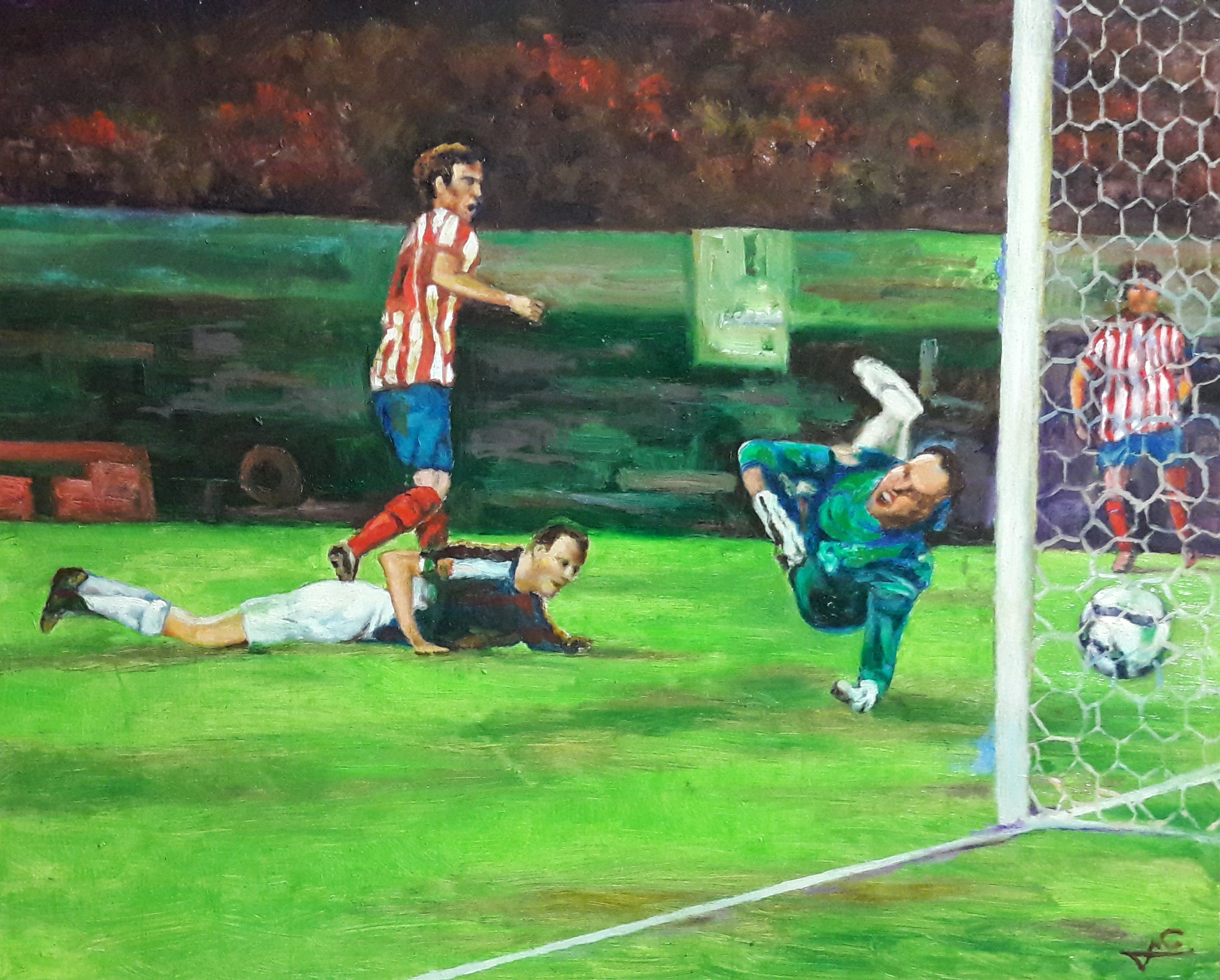 Allí, en ese imaginario Calderón que llena la Casa del Reloj, Adelardo ejerció una vez más como capitán, como siempre, porque Adelardo es y siempre será El Capitán, y acompañó en el saque inicial de esta exposición a Rodri a que nos explicara cómo se siente el mundo desde debajo de los travesaños del Calderón.